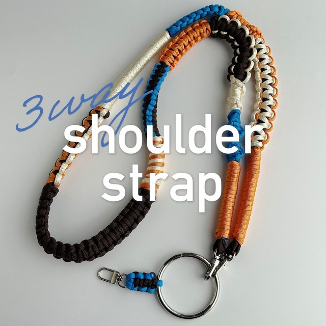 こちらはショルダーストラップオーダー専用ページになります。 発送までの目安:4週間 ご購入後はお客様都合でのキャンセルは対応できかねます。 ショルダー部分:約120cm キーリング部分:約12cm 気分や服装に合わせて長さが調整できる3wayとなっています。 スマホショルダー+キーリングとしても使えます。 大きな丸カラビナが付いているので、イヤホンケースやコインケースなどを引っかけることもできます。 肩の部分は平らな編み方にしているため、長時間つけても痛みがありません。 以下、ご購入前にご一読ください。 ---------------------------------------------------------------------------------- □ショルダー部分が約120cmとなります。変更希望の場合はカラー相談の際にお申し出ください。(±10cmまで) □すぐに使用できるよう透明のストラップシートを付けています。 □4mm7芯のパラコードで作成しています。 □撮影環境により若干の色味の違いがあるかもしれません。 □多少伸縮性のある素材であるのと、編み方によっては数cmの誤差があります。 □編み方の変更は致しかねます。 □数カ所焼き止めがあります。 ----------------------------------------------------------------------------------