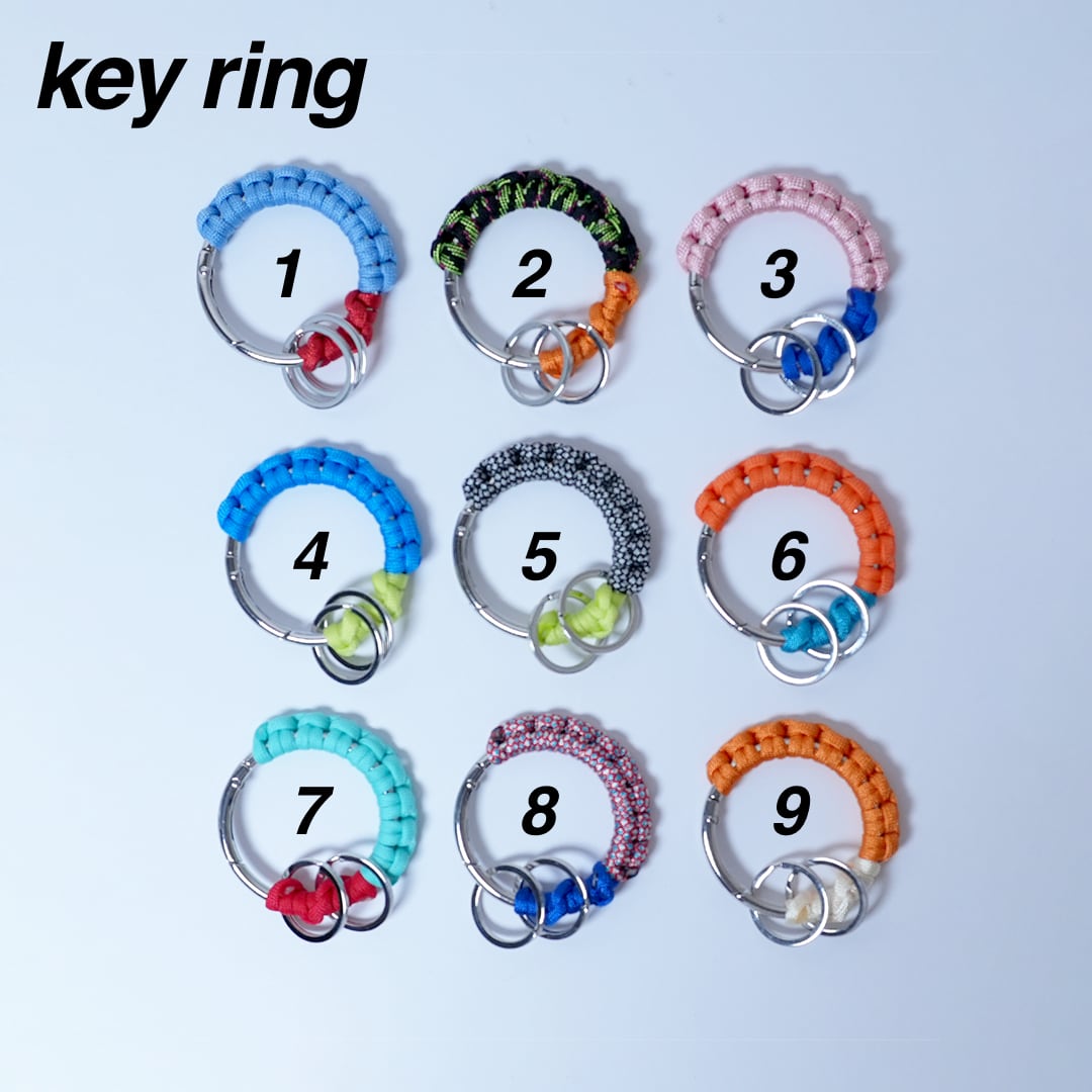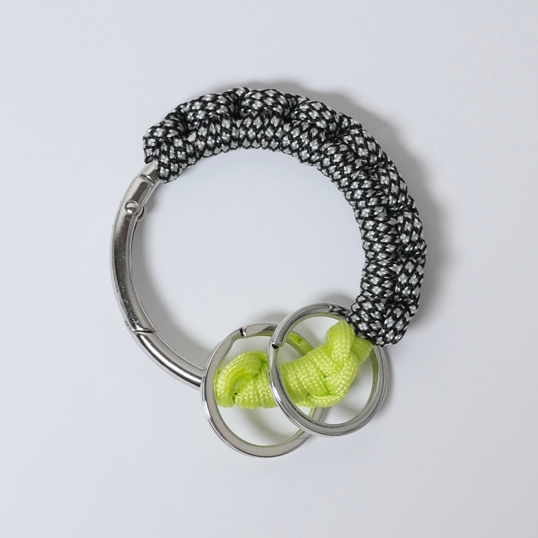 □直径6cmの丸カラビナにパラコードを巻きつけています。